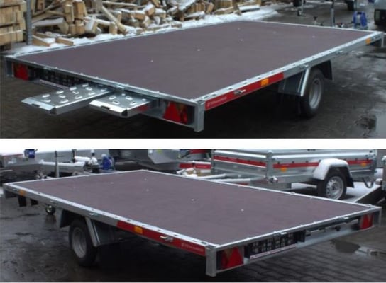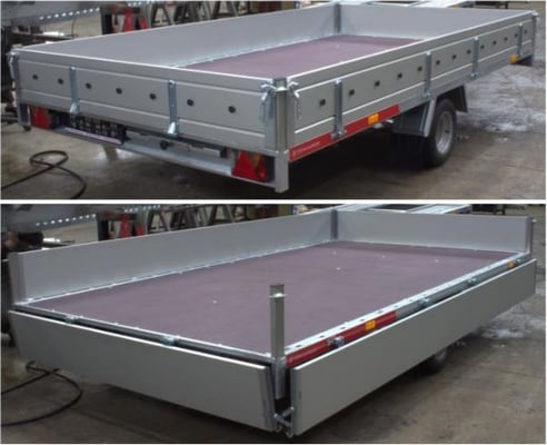 avec sa version plateau cette remorque pourra etre converti en plateau ridelles grace a l'option ridelles alu.