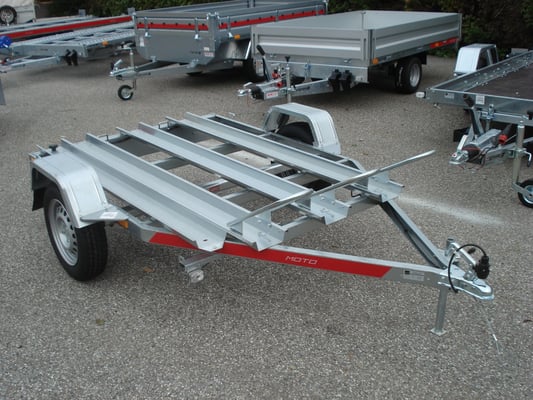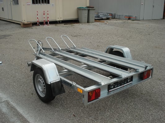 porte moto 1 essieu 750kg , chassis galvanisé, conçu pour le transport de 3 motos au maximun,il peut etre livré avec ou sans plancher marine.