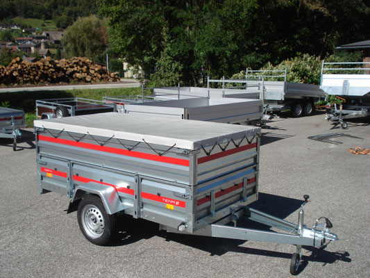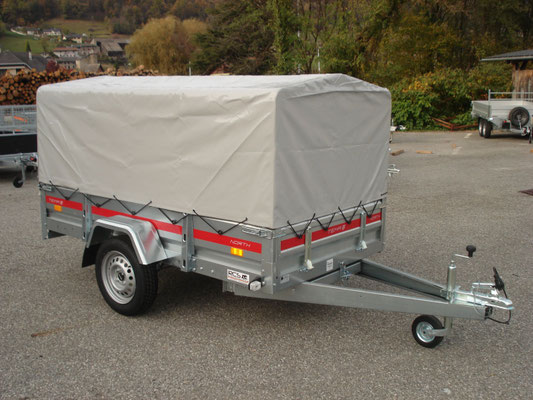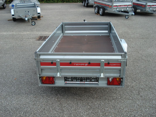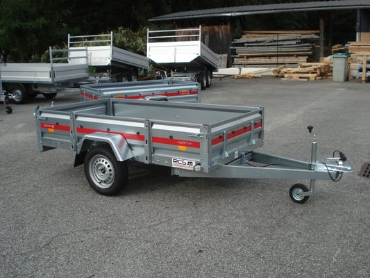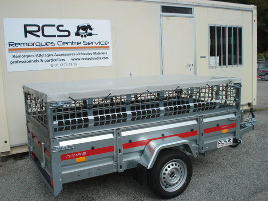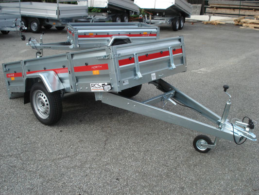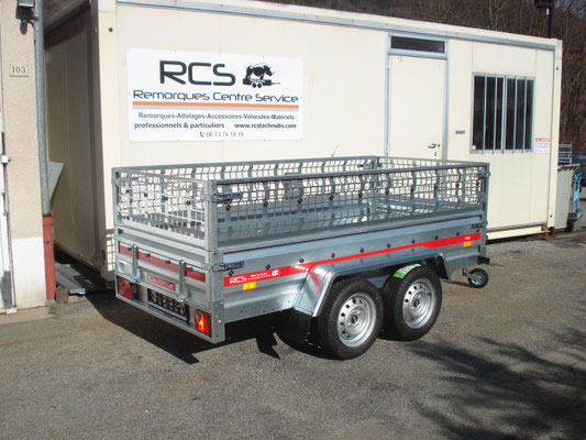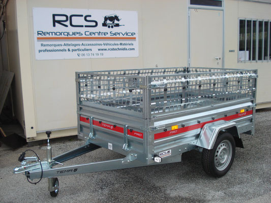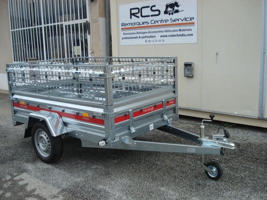Essieu 750kg équipé de suspensions à barre de torsion caoutchouc avec roulements étanches, pneus 155/70/13, 2 feux de gabarit, Ridelles avant et arrière rabattables fermeture par grenouillères équipées de poignées avec cliquet de sécurité, Feux intégrés dans la rampe ce qui assure une bonne protection contre les chocs.