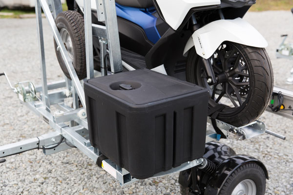 pour le transport de votre scooter, moto.blocage de la roue avant avec le bloc roue integré.